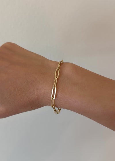 The LINEA Bracelet embraces the classic paperclip chain silhouette with fully solid links — timeless, substantial in weight, enduring in form.